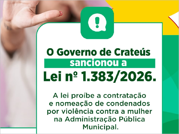 O Governo de Crateús, sancionou a Lei nº 1.384/2026, que institui a Semana Municipal Maria da Penha nas escolas.