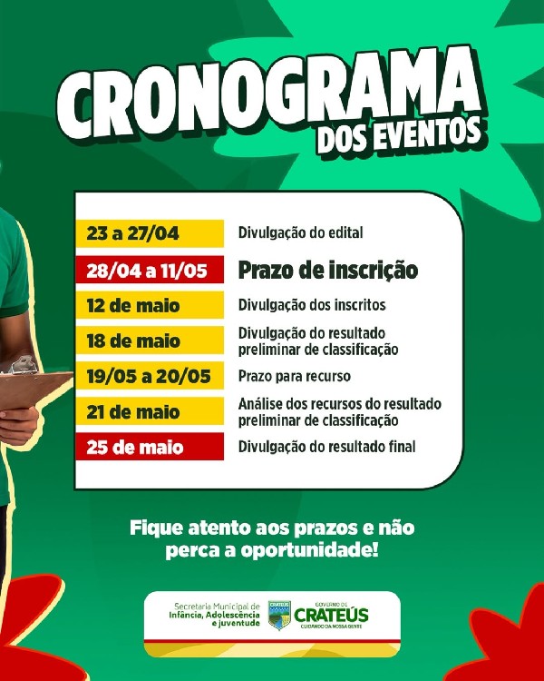 Fique atento aos prazos e não perca essa oportunidade de fazer parte dessa iniciativa!