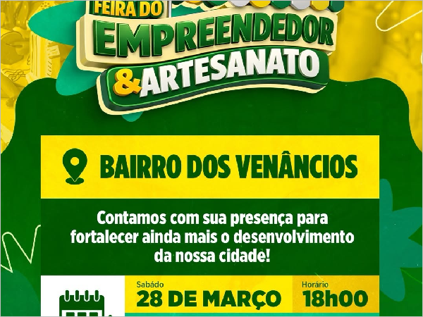 A Prefeitura de Crateús, através da Secretaria de Desenvolvimento Econômico e Empreendedorismo convida você para a Feira do Empreendedor e Artesanato.