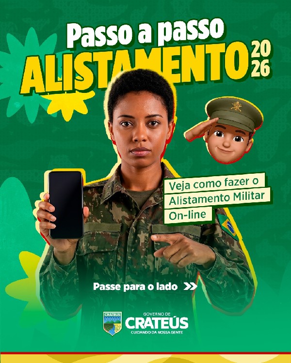 O Governo de Crateús, por meio da Junta de Serviço Militar, informa que os jovens que completam 18 anos em 2026 devem realizar o alistamento militar obrigatório dentro do prazo estabelecido.