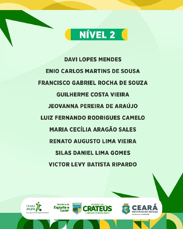 O Governo de Crateús, por meio da Secretaria Municipal de Esporte e Lazer, divulga o resultado da seleção do programa Bolsa Atleta, uma importante iniciativa de incentivo ao esporte e valorização dos atletas do nosso município.